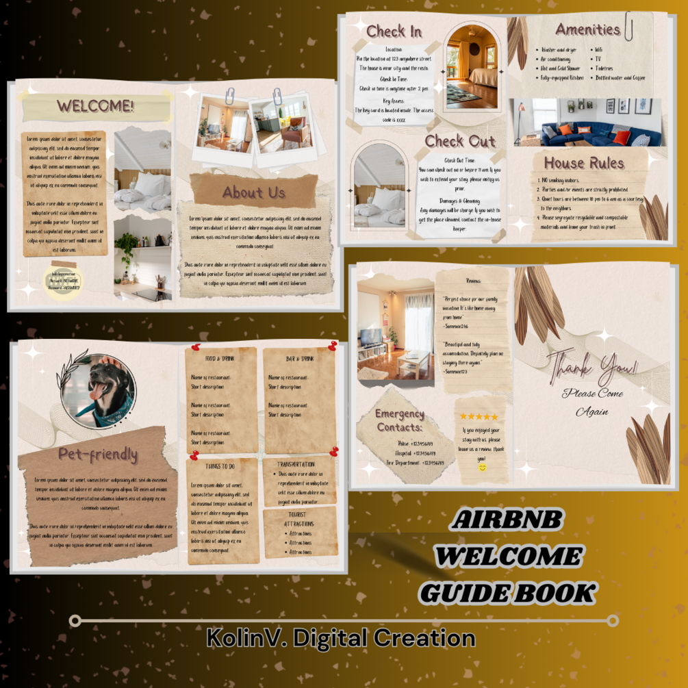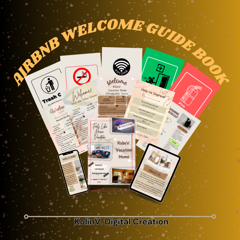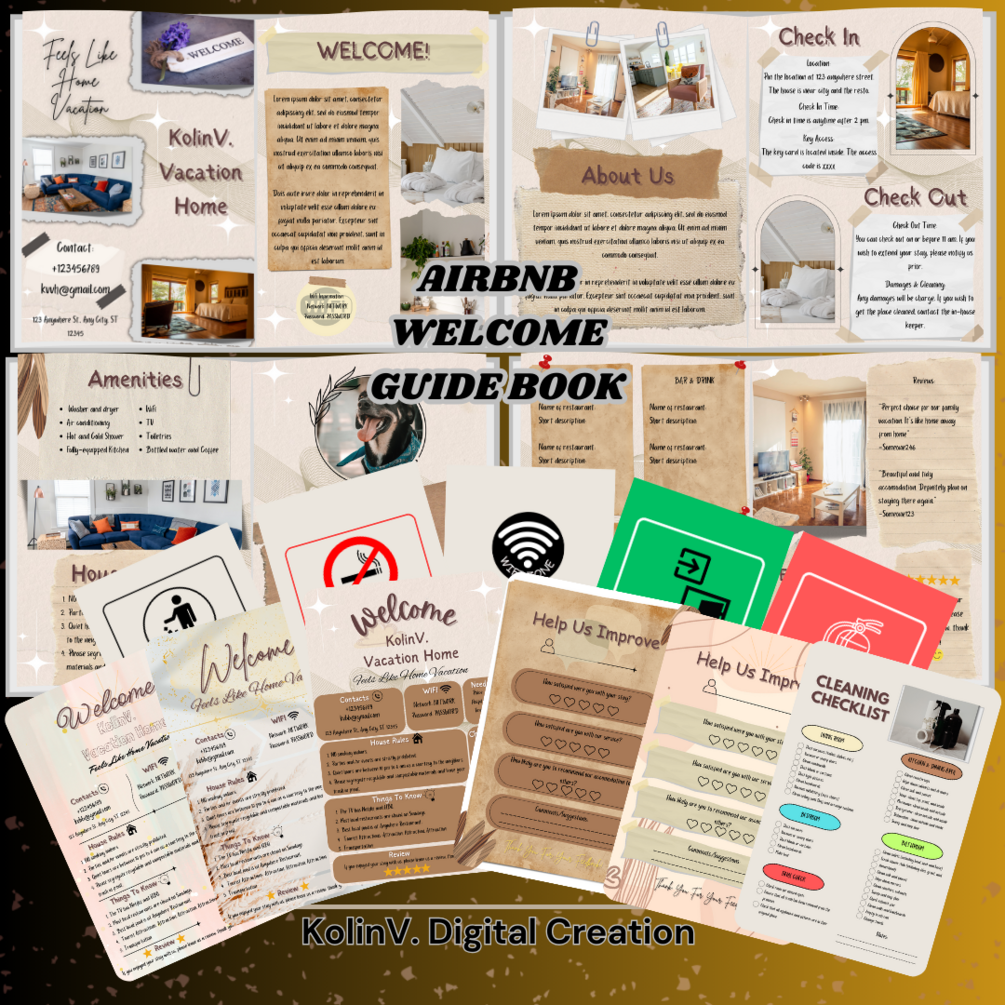 This is an AirBnb Welcome Guide Book Canva Template ready for Printing! It has an aesthetic designs!