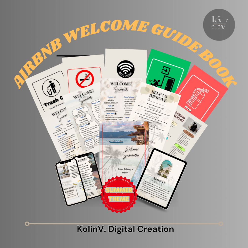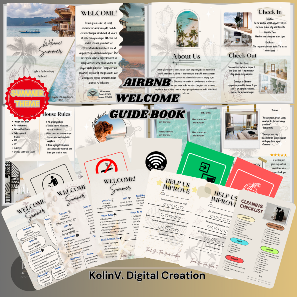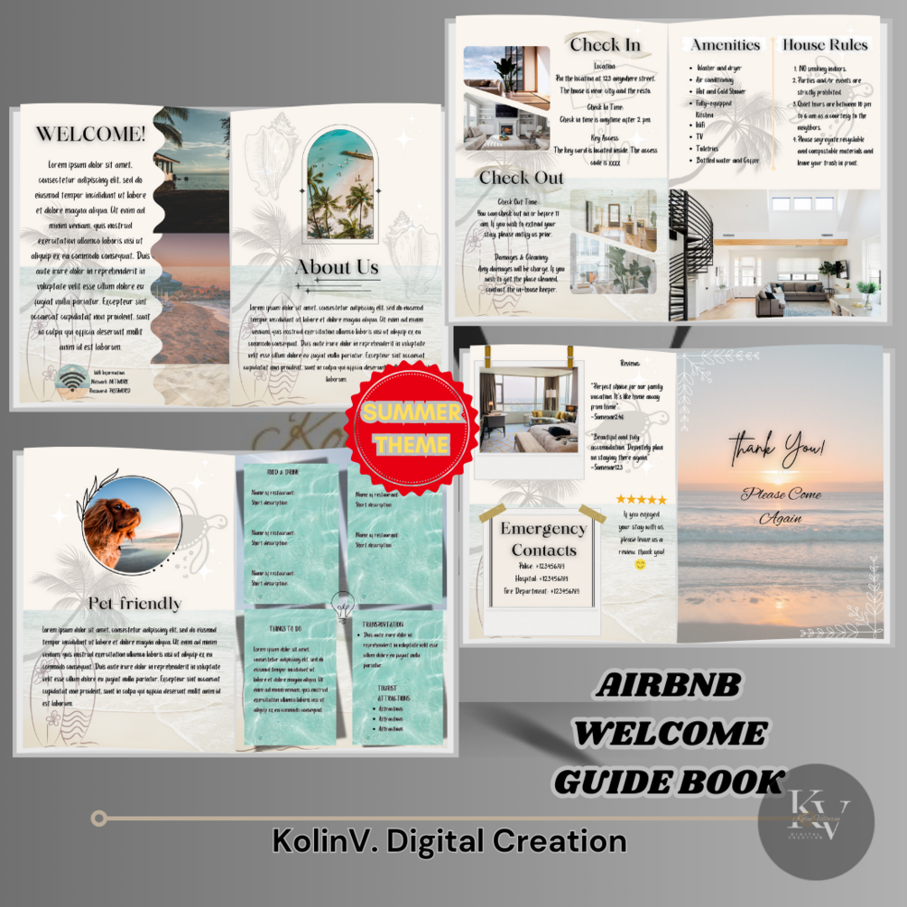 This is a SUMMER THEMED AirBnb Welcome Guide Book Canva Template ready for Printing!